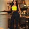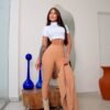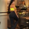 A FRUSTRAÇÃO DE UMA ROUPA QUE NÃO VALORIZA SUA SILHUETA… Uma Flare que não tem “corpo” não consegue entregar aquele efeito de pernas alongadas e cintura modelada que tanto amamos. Além disso, a falta de bolsos traseiros muitas vezes deixa o visual com cara de “roupa de academia”, tirando a versatilidade da peça para o trabalho ou eventos sociais.
